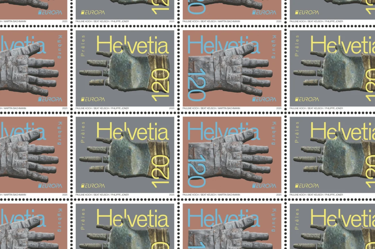 Die Post hat zwei neue Briefmarken mit dem Panzerhandschuh von der Kyburg und der Bronzehand von Prêles herausgegeben. Sie können unter www.postshop.ch vorbestellt werden, ab 5. Mai sind sie in den Postfilialen erhältlich. «Nationale archäologische Funde» lautet das Thema für die Europa-Marken 2025. Auf der Schweizer Ausgabe sind zwei seltene Fundstücke abgebildet, die ihren Altersunterschied von rund 2700 Jahren mit einem Handschlag symbolisch überbrücken: Der Panzerhandschuh wurde Anfang 2024 in der Nähe des Schlosses Kyburg gefunden. Mitarbeitende der Zürcher Kantonsarchäologie stiessen bei einer Ausgrabung auf die eisernen Bestandteile, die zu einer Rüstung aus dem 14. Jahrhundert gehören. Wesentlich älter ist die Bronzehand von Prêles, die 2017 im Berner Jura gefunden wurde. Mit 3500 Jahren ist sie europaweit das älteste Bronzeobjekt in Form eines menschlichen Körperteils. Sie stammt aus dem Grab eines erwachsenen Mannes, der um 1400 v. Chr. auf den Jurahöhen über dem Bielersee bestattet wurde.