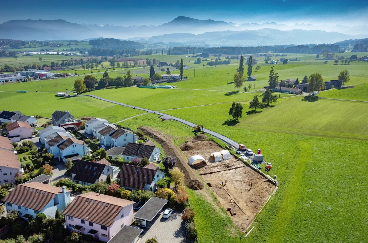 Eine archäologische Fundstätte wird freigelegt (Sins AG). © Kantonsarchäologie Aargau